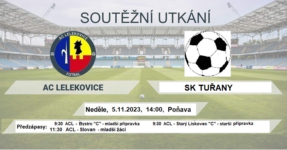 AC Lelekovice zve v neděli 5. 11. na poslední zápasy všech družstev. Žákovská utkání v 9:30 a 11:30, muži nastoupí už ve 14 hodin proti SK Tuřany.