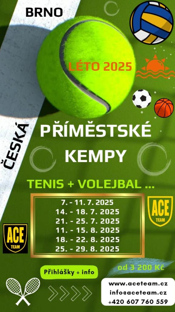 Tenisová škola ACE Team nabízí pro děti letní příměstský kemp v České. Bližší informace podá Mgr. Jiří Halama, tel.607760559