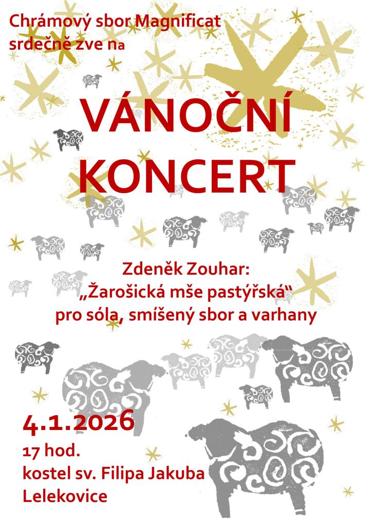 Chrámový sbor Magnificat srdečně zve na Vánoční koncert, který se uskuteční v neděli 4. 1. 2026 v 17 hod. v kostele sv. Filipa a Jakuba v Lelekovicích.....