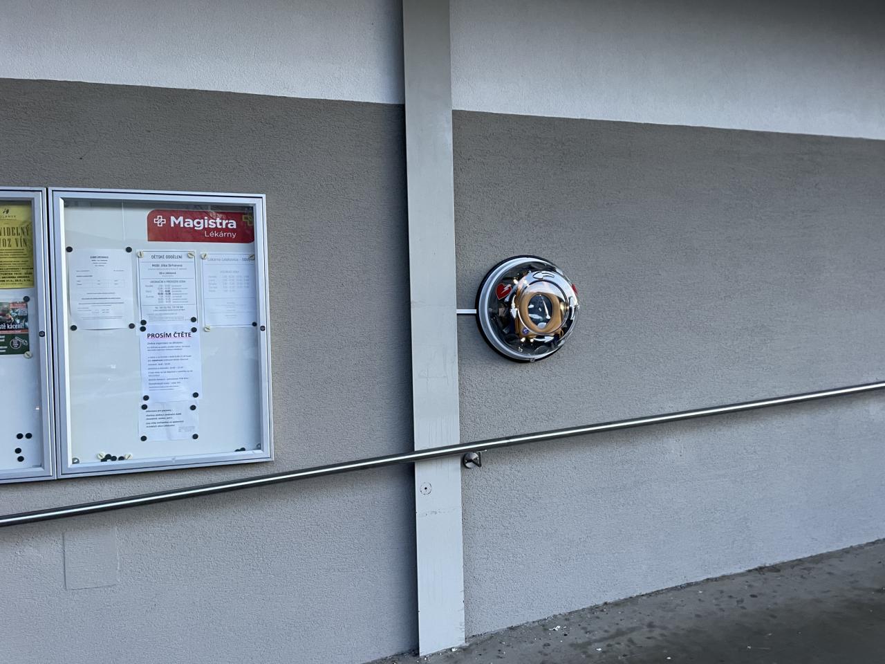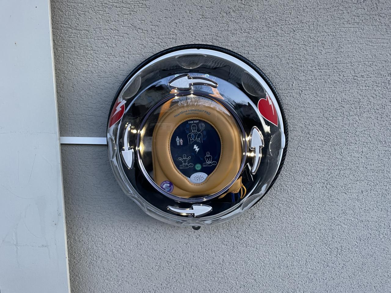 …byl nainstalován plně automatický defibrilátor. Při použití hlasová nápověda přesně navádí co je nutné udělat. Kryt je opatřen sirénou, která se při sejmutí spustí. Doufejme, že ho nebudeme potřebovat…