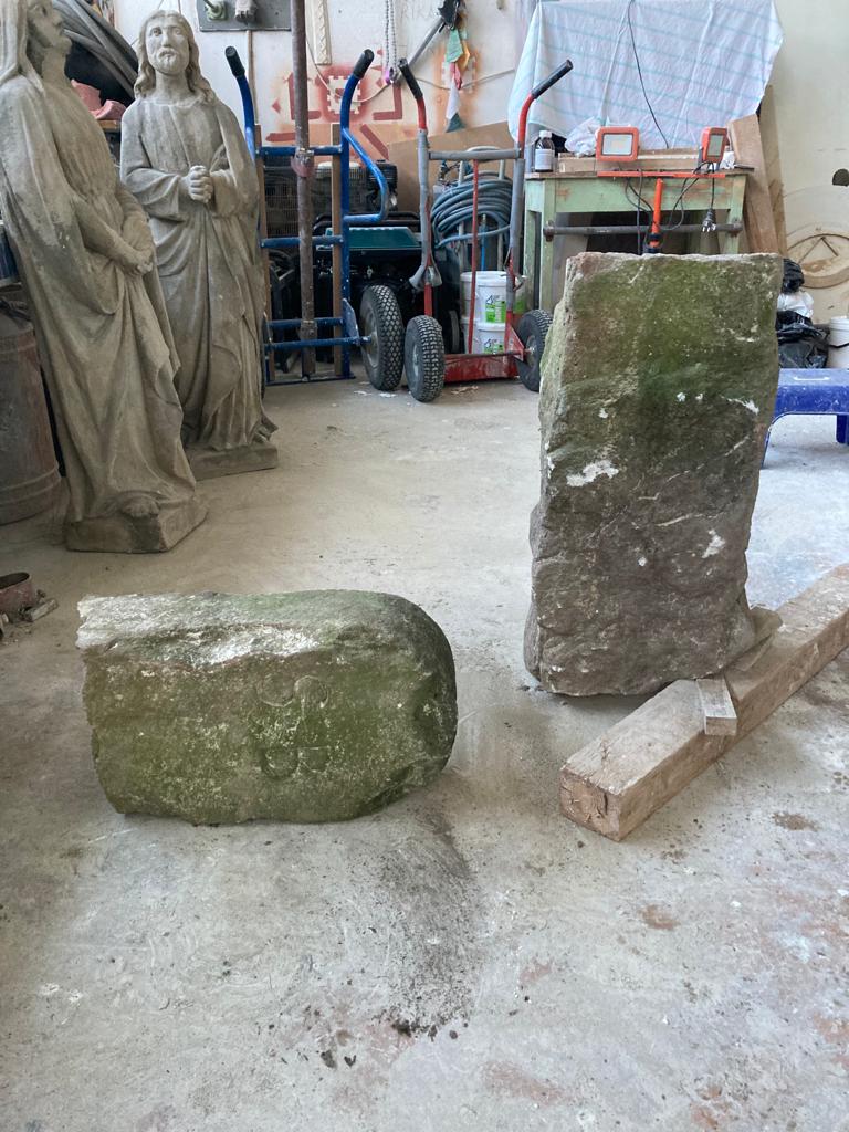 …nás upozornil na poškozený hraniční kámen na hranici našeho a vranovského katastru. Kámen jsme odvezli, nechali opravit a znovu osadíme. Kámen je asi z 18. století a písmena FL značí Fürstentum Liechtenstein (knížectví Lichtenštejnské) a z naší strany SB - Stadt Brünn...Mistr kameník, pan Zimovčák opravu provedl zcela zdarma. Moc díky…