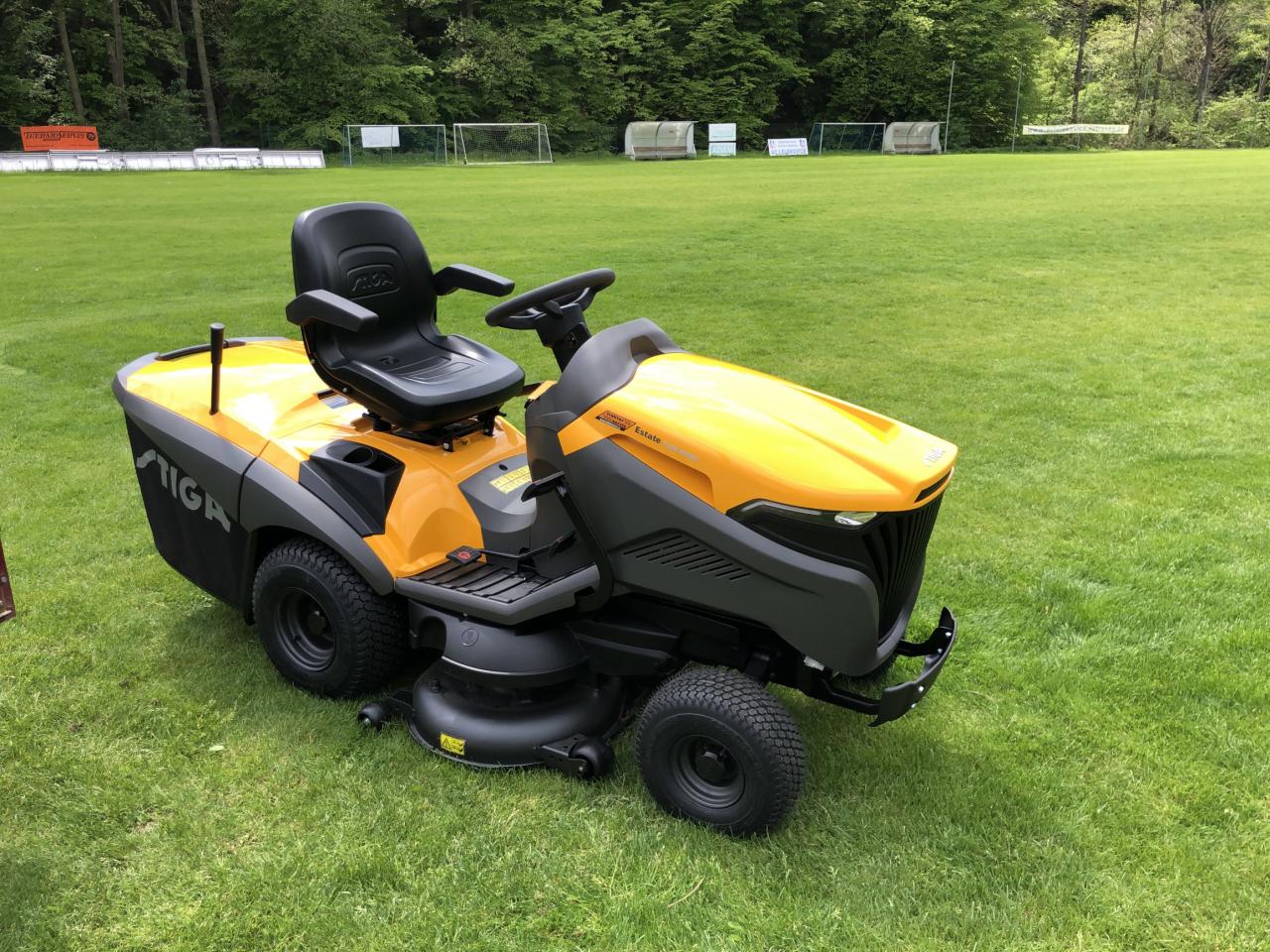 ...sekačka na fotbalovém hřišti, která poslední dobou více stála než sekala, odjela na zasloužený odpočinek a na její místo přijela nová sekačka... (v klubových barvách)