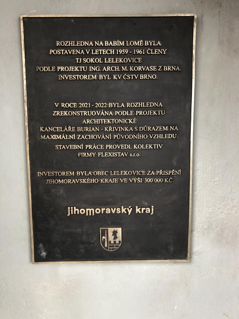 …opravy rozhledny Babí Lom byla instalace pamětní desky do výklenku pod schody.