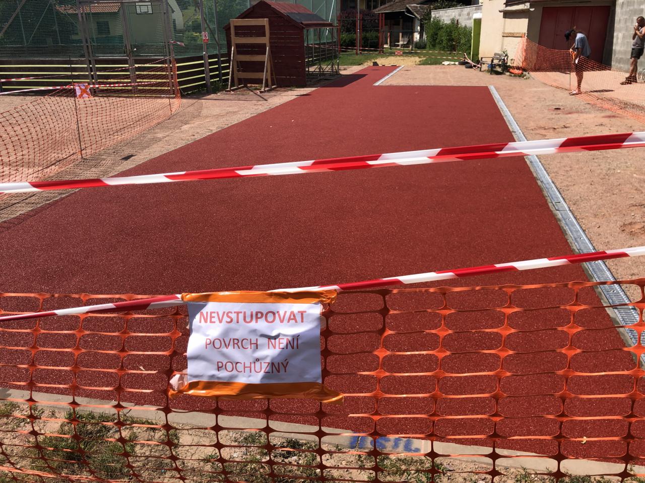 …vznikla startovací plocha pro požární sport a rozběh pro skok daleký z tartanu. Do pátku 24.6. prosím nevstupujte na plochu… Díky