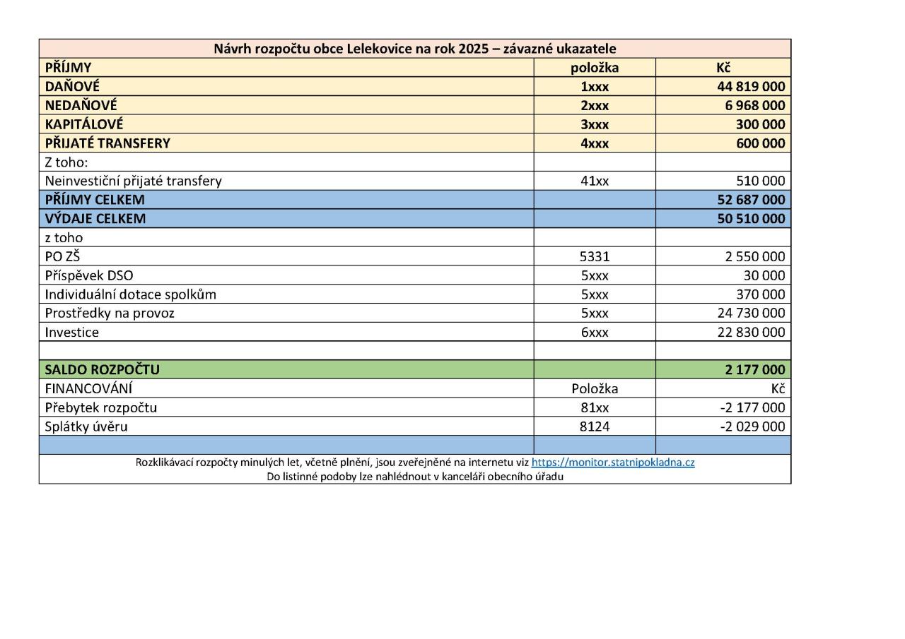 Ten letošní rozpočet je koncipovaný jako mírně přebytkový. Počítáme s příjmy ve výši 52.687.000 Kč a celkovými výdaji ve výši 50.510.000 Kč. Saldo rozpočtu by tedy mělo být 2.177.000 Kč. Po odečtení splátky jistiny úvěru (2.029.000) zbývá přebytek 148.000 Kč.