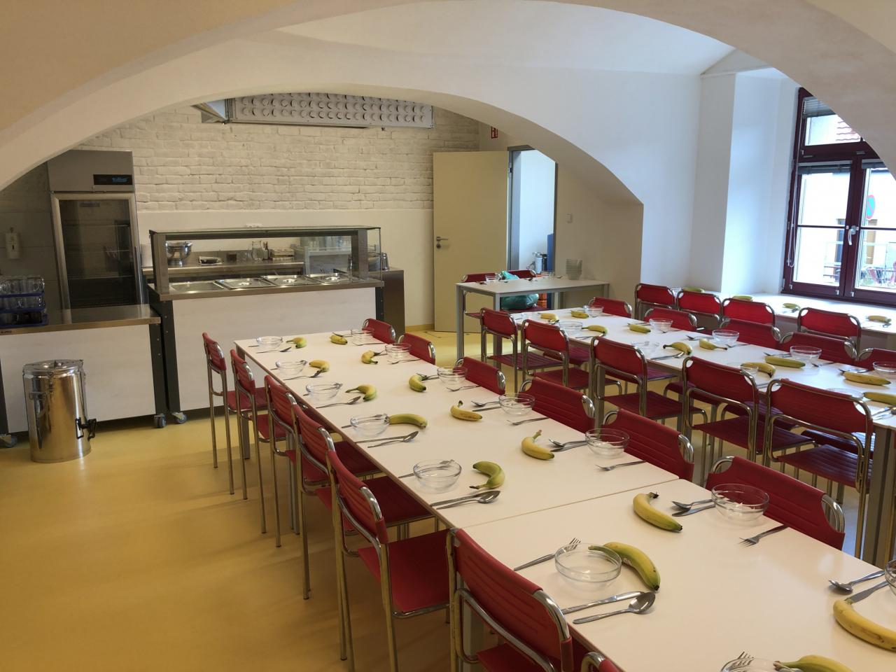 …jídelny byly dokončeny a dnes, v pondělí, byla uvedena do provozu. Osobně jsem si chtěl ověřit, že všechno bude fungovat tak, jak bylo naplánováno. Prostory sice zůstaly poněkud stísněné, ale výdej jídla běží jako po másle…